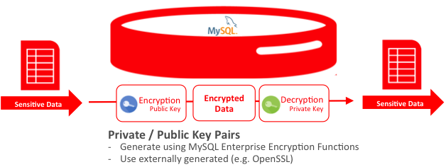 To protect sensitive data throughout its lifecycle, MySQL Enterprise Encryption provides industry standard functionality for asymmetric encryption (Public Key Cryptography). MySQL Enterprise Encryption provides encryption, key generation, digital signatures and other cryptographic features to help organizations protect confidential data and comply with regulatory requirements including HIPAA, Sarbanes-Oxley, and the PCI Data Security Standard.